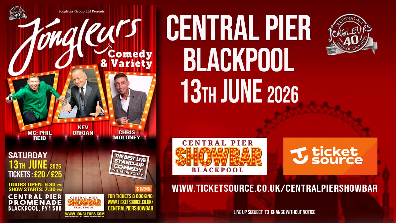 🎭✨ BRAND NEW FOR 2026 – JONGLEURS COMEDY & VARIETY SHOW ✨🎭📍 13th June 2026, Central Pier Showbar, Blackpool🕡 Doors Open: 6.30pm🎤 Show Starts: 7.30pm 🎟️ Early Bird £20 | General Admission £25👉 Book now: www.ticketsource.co.uk/centralpiershowbar 🌟 BLACKPOOL, GET READY FOR SOMETHING SPECIAL! 🌟 Jongleurs proudly launches an exciting new concept at the iconic Central … Continued