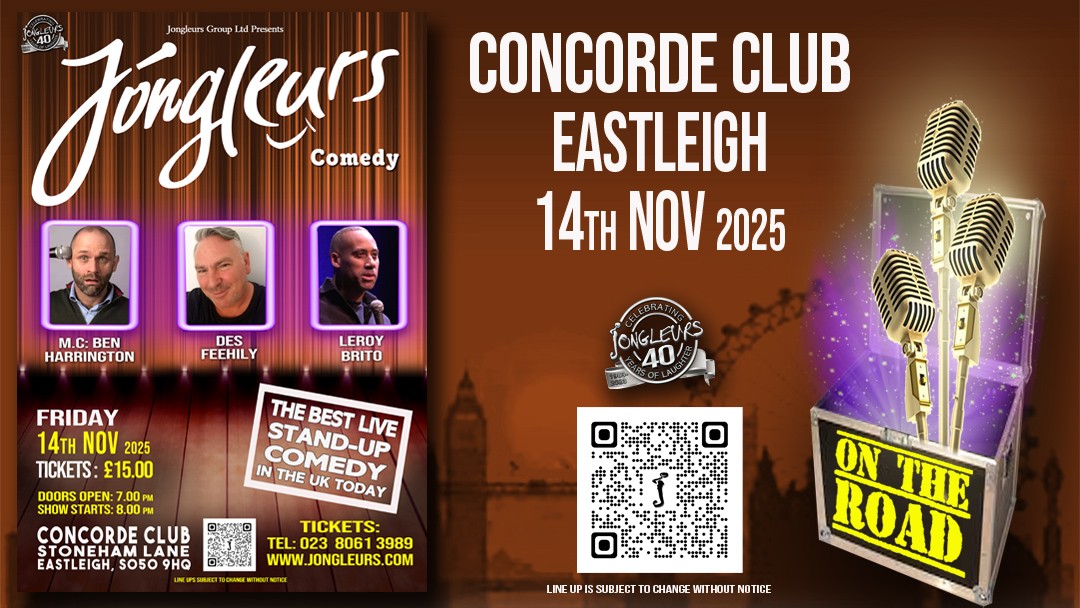 Get ready, Eastleigh – because Jongleurs Comedy Club is back at the Concord Club for another unmissable night of big laughs, brilliant acts, and belly-aching comedy at its very best.